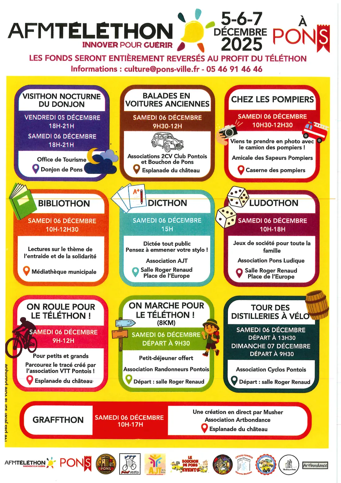 Les 5, 6 et 7 décembre, les associations de Pons proposent des animations pour toute la famille dans le cadre du Téléthon. L’objectif : passer un bon moment tout en soutenant la recherche. Cette édition est organisée par Pons Ludique, en coordination avec la mairie.